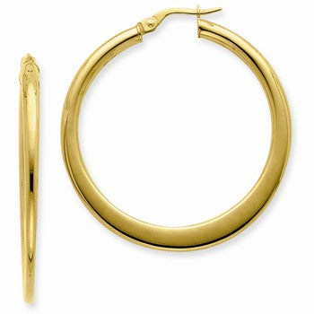 14k Yellow Gold 3x30mm Polished Tapered Round Hoop Earrings