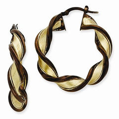 14k Yellow Gold Chocolate Rhodium 7mm Twisted Hoop Earrings