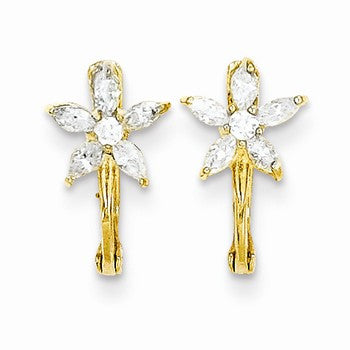 14k Yellow Gold CZ April Birthstone Flower Hinged Hoop Earrings