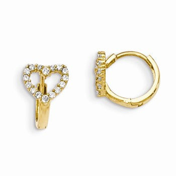 14k Yellow Gold CZ Childrens Hinged Hoop Heart Earrings