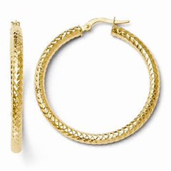 14k Yellow Gold ForeverLite Polished and Textured Hoop Earrings