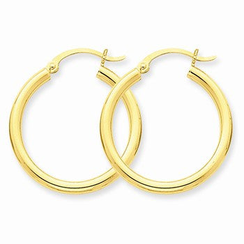 14k Yellow Gold Polished 2.5mm Round Hoop Earrings