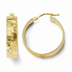 14k Yellow Gold Polished and Textured Hoop Earrings