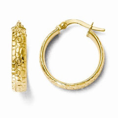 14k Yellow Gold Polished and Textured Hoop Earrings