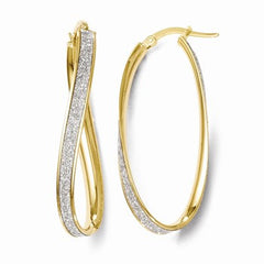14k Yellow Gold Polished Glitter Infused Oval Twist Hoop Earrings
