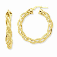 14k Yellow Gold Polished Satin Twisted Hoop Earrings