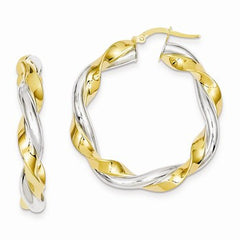 14k Yellow Gold Rhodium Twisted Hoop Earrings
