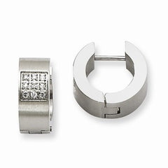 Stainle Steel CZ Brushed Polished Hinged Hoop Earrings