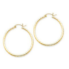 Sterling Silve 2x35mm Diamond-cut Hoop Earrings