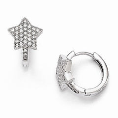 Sterling Silver CZ Rhodium Star Hoop Earrings