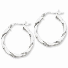 Sterling Silver Flattened Twist 25mm Hoop Earrings