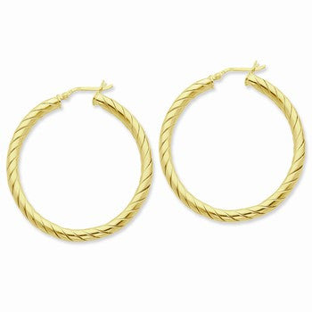 Sterling Silver Gold-flashed Open Turned Twist 45mm Hoop Earrings