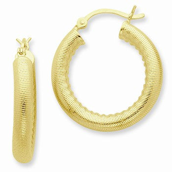 Sterling Silver Gold-flashed Patterned 25mm Hoop Earrings