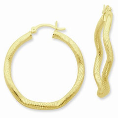 Sterling Silver Gold-flashed Patterned Dented 35mm Hoop Earrings