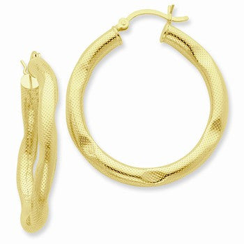 Sterling Silver Gold-flashed Patterned Dented 35mm Hoop Earrings