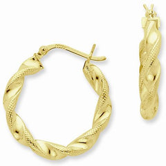 Sterling Silver Gold-flashed Patterned Twist 25mm Hoop Earrings