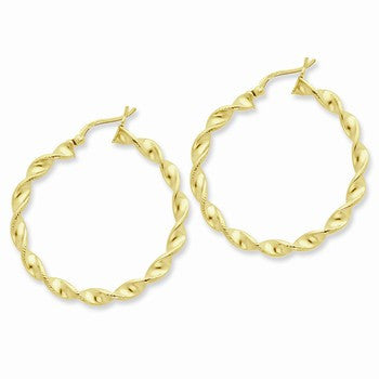 Sterling Silver Gold-flashed Patterned Twist 35mm Hoop Earrings