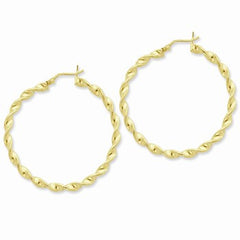 Sterling Silver Gold-flashed Patterned Twist 45mm Hoop Earrings
