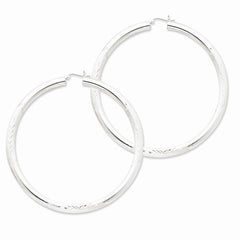 Sterling Silver Polished Satin Diamond-cut Hoop Earrings
