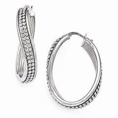 Sterling Silver Polished Swarovski Elements Hoop Earrings