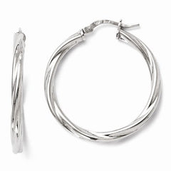 Sterling Silver Polished Twisted Hinged Hoop Earrings