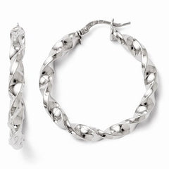 Sterling Silver Polished Twisted Hinged Hoop Earrings