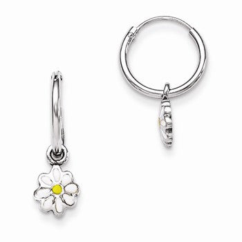 Sterling Silver RH Plated Childs Enameled Daisy Hinged Hoop Earrings