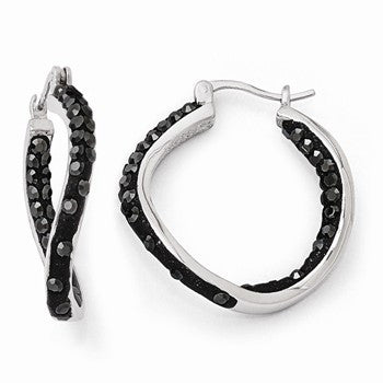 Sterling Silver Rhodium Black Clay Preciosa Crystal Hoop Earrings