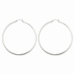 Sterling Silver Rhodium-plated 2.25mm Diamond-cut Hoop Earrings