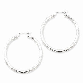 Sterling Silver Rhodium-plated 3.00mm Diamond-cut Hoop Earrings