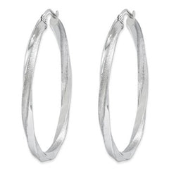 Sterling Silver Rhodium-plated 3.00mm Polished Satin Twisted Hoop Earring