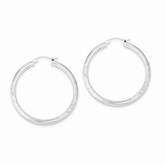 Sterling Silver Rhodium-plated 3.00mm Satin Diamond-cut Hoop Earrings