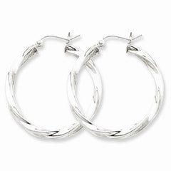 Sterling Silver Rhodium-plated 3.00mm Twisted Hoop Earrings