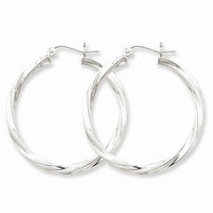 Sterling Silver Rhodium-plated 3.00mm Twisted Hoop Earrings