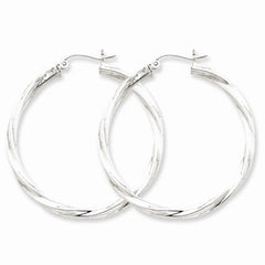 Sterling Silver Rhodium-plated 3.00mm Twisted Hoop Earrings