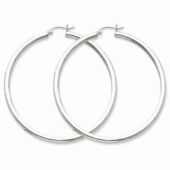 Sterling Silver Rhodium-plated 3mm Round Hoop Earrings