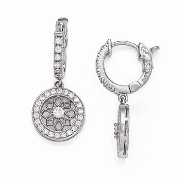 Sterling Silver Rhodium Plated CZ Hinged Hoop Dangle Snowflake Earrings