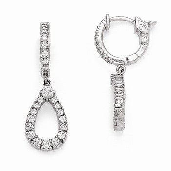 Sterling Silver Rhodium Plated CZ Hinged Hoop Dangle Teadrop Earrings