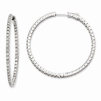 Sterling Silver Rhodium Plated CZ In and Out Hoop Earrings