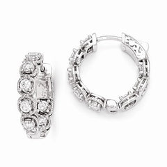 Sterling Silver Rhodium Plated CZ In and Out Hoop Earrings