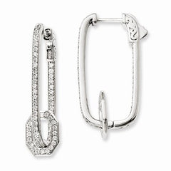 Sterling Silver Rhodium-plated CZ In and Out Square Hoop Earrings