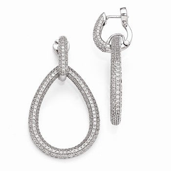 Sterling Silver Rhodium Plated CZ Teardrop Hinged Hoop Dangle Earrings
