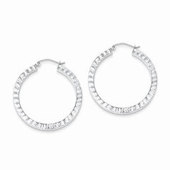 Sterling Silver Rhodium-plated Diamond-cut Square Hoop Earrings