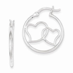 Sterling Silver Rhodium Plated Double Heart Hoop Earrings