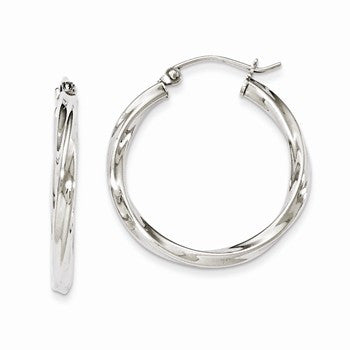 Sterling Silver Rhodium-plated Twisted Hoop Earrings