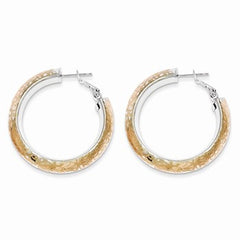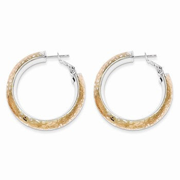 Sterling Silver Rose Gold Plated Patterned Hoop Tube Earrings