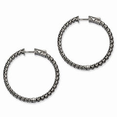 Sterling Silver Ruthenium-plated CZ In and Out Round Hoop Earrings