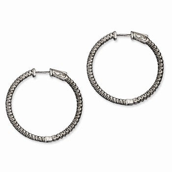 Sterling Silver Ruthenium-plated In and Out CZ Round Hoop Earrings