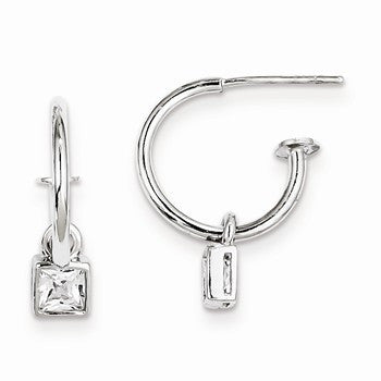 Sterling Silver Square CZ Dangle Hoop Earrings