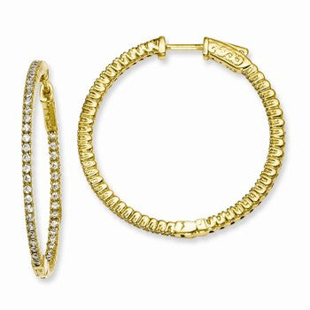 Sterling Silver Yellow-plated CZ In and Out Round Hoop Earrings